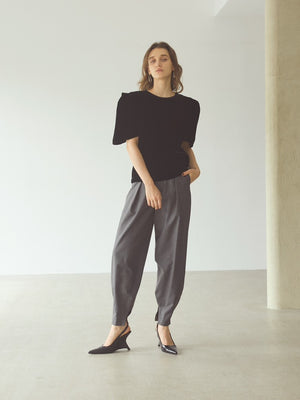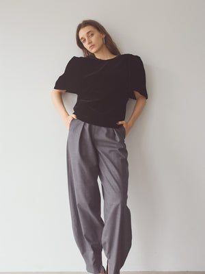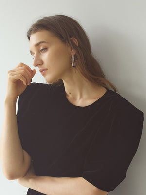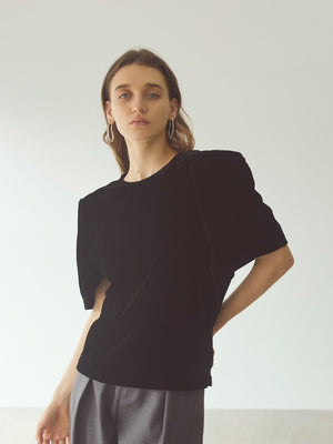 上質なベルベット素材で仕立てた、存在感のあるパワーショルトップス。