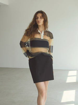 NAVY×YELLOW Sheer rugby shirt knit.
