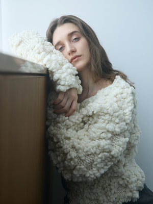 立体感のある糸が特徴的なニットカーディガン。