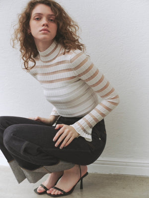 シアー感のあるボーダーデザインが魅力的な一枚。