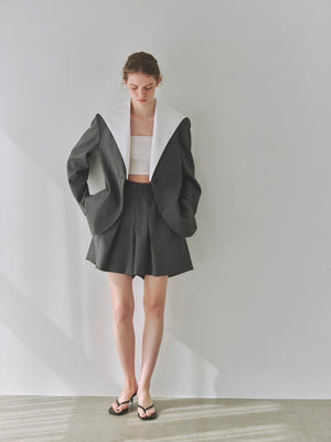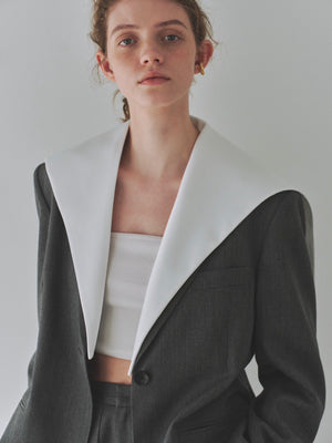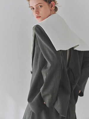 襟を付ければモードな印象に、外せばシンプルで洗練されたジャケットとしてもお召しいただける2WAY仕様です。
