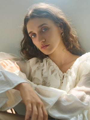 見た目の華やかさに加え、驚くほど軽く、さらりとした着心地の良さも魅力。長時間の着用でもストレスを感じにくく、日常から特別なシーンまで幅広く活躍してくれるブラウスです。