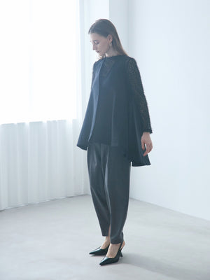 Aラインの広がりが上品で、ボリューム感のあるメルトンのフレアベスト。