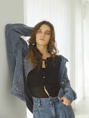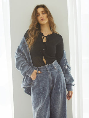 同素材で展開しているファンシーデニムパンツと合わせれば、洗練されたセットアップスタイルに。