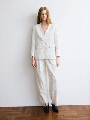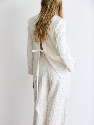 フェザー感のあるジャガードを使用したバックコンシャスジャケット。